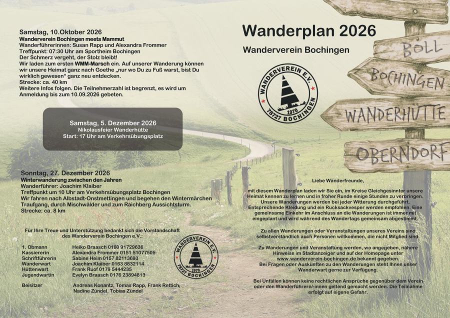 Bei Wandervorschlägen bzw. Fragen zu bestehenden Wanderungen wenden Sie sich bitte an den Wanderwart.